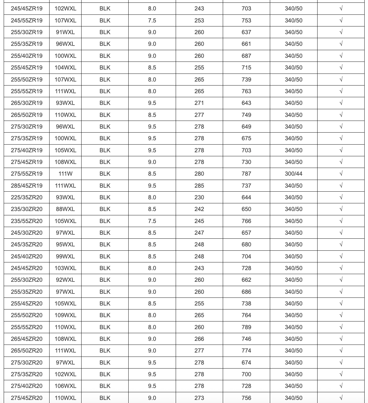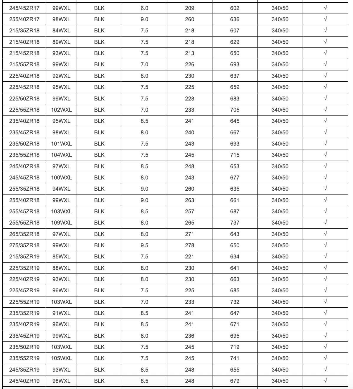 SECTION WIDTH: 185-315